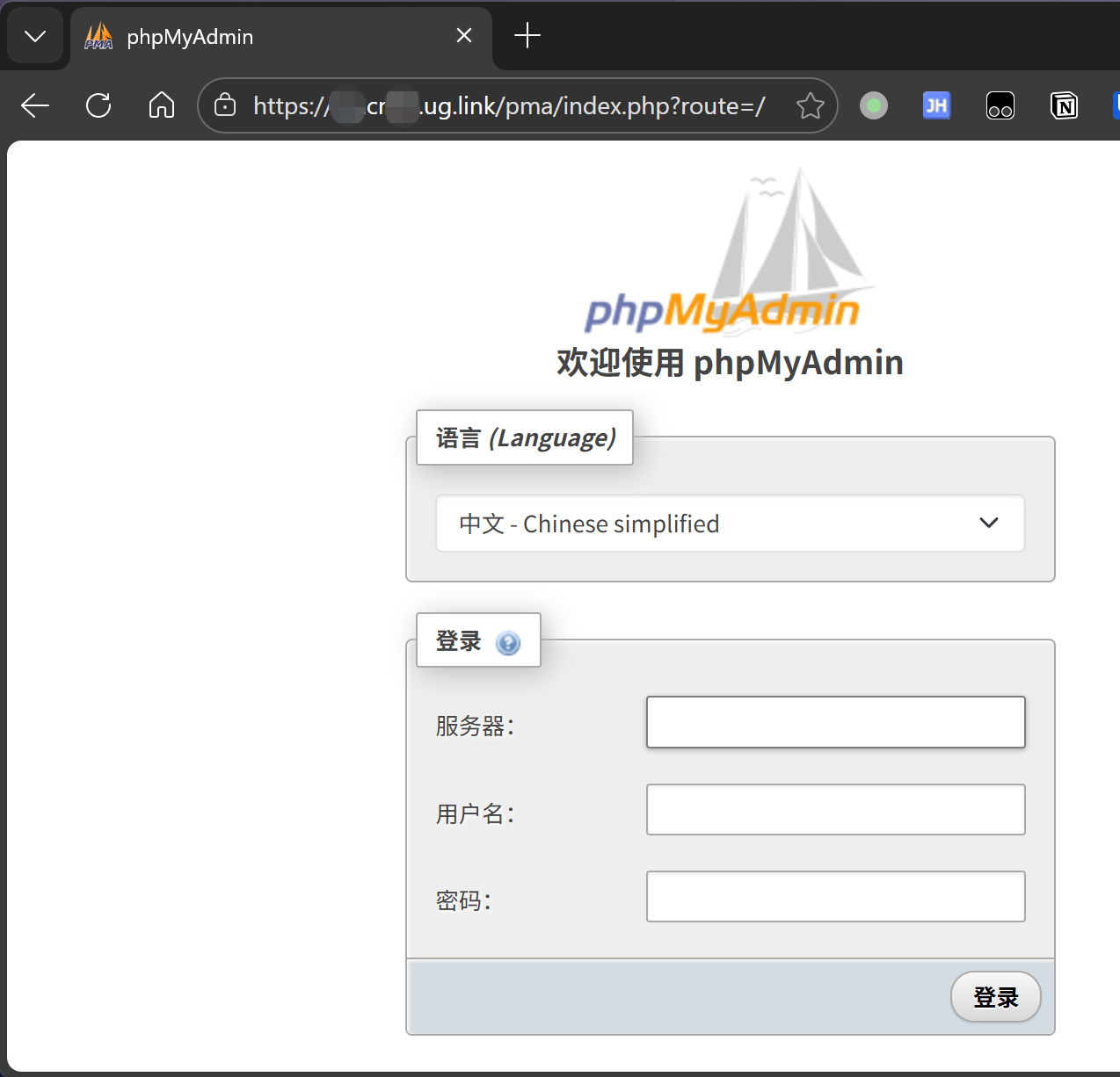在浏览器中访问:https://mylinkid.cn33.ug.link/pma/